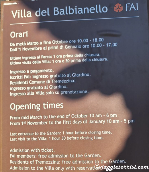 - È possibile raggiungere la villa anche via lago usufruendo dei servizi taxiboat a pagamento dal Lido di Lenno. Servizio di privati, non sempre garantito.