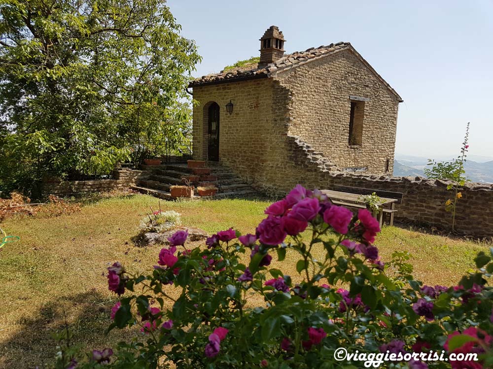 Io ho avuto la fortuna di conoscerlo ed innamorarmene in una bellissima giornata d’estate in occasione di una delle nostre camminate solidali fotografiche alla scoperta delle meravigliose Marche. Ci ha accompagnati nella passeggiata Enrico, professore e guida esperta che ci ha raccontato tutto di questo castello, oggi borgo meraviglioso tra il cielo la natura e il mare, chiamato anche il Tetto delle Marche.