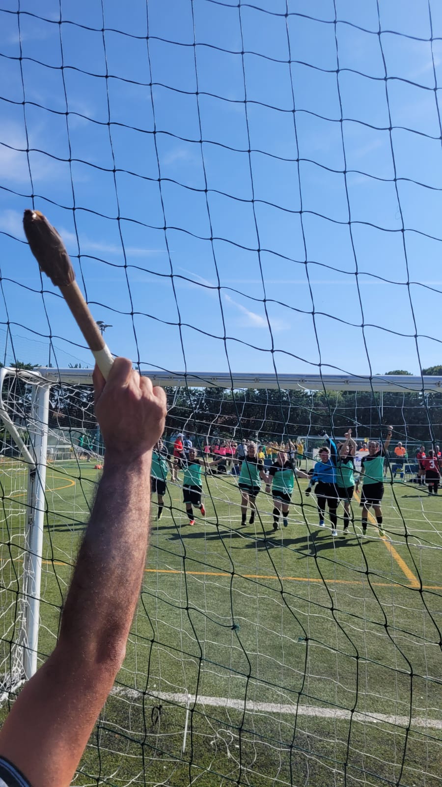 Il Mister che cerca Marica che si è nascosta dietro la panchina….fantastica Marica!